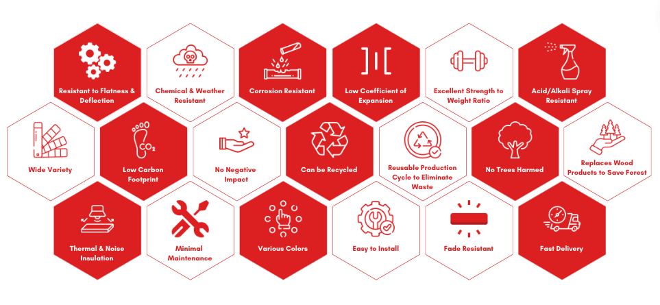 Duna Composite Panel Series stands out from the competition, thanks to its unmatched quality, ease of machinability, durability and performance. It has a wide range of applications that can be tailored to any customer’s needs, funds and decorative requirements.